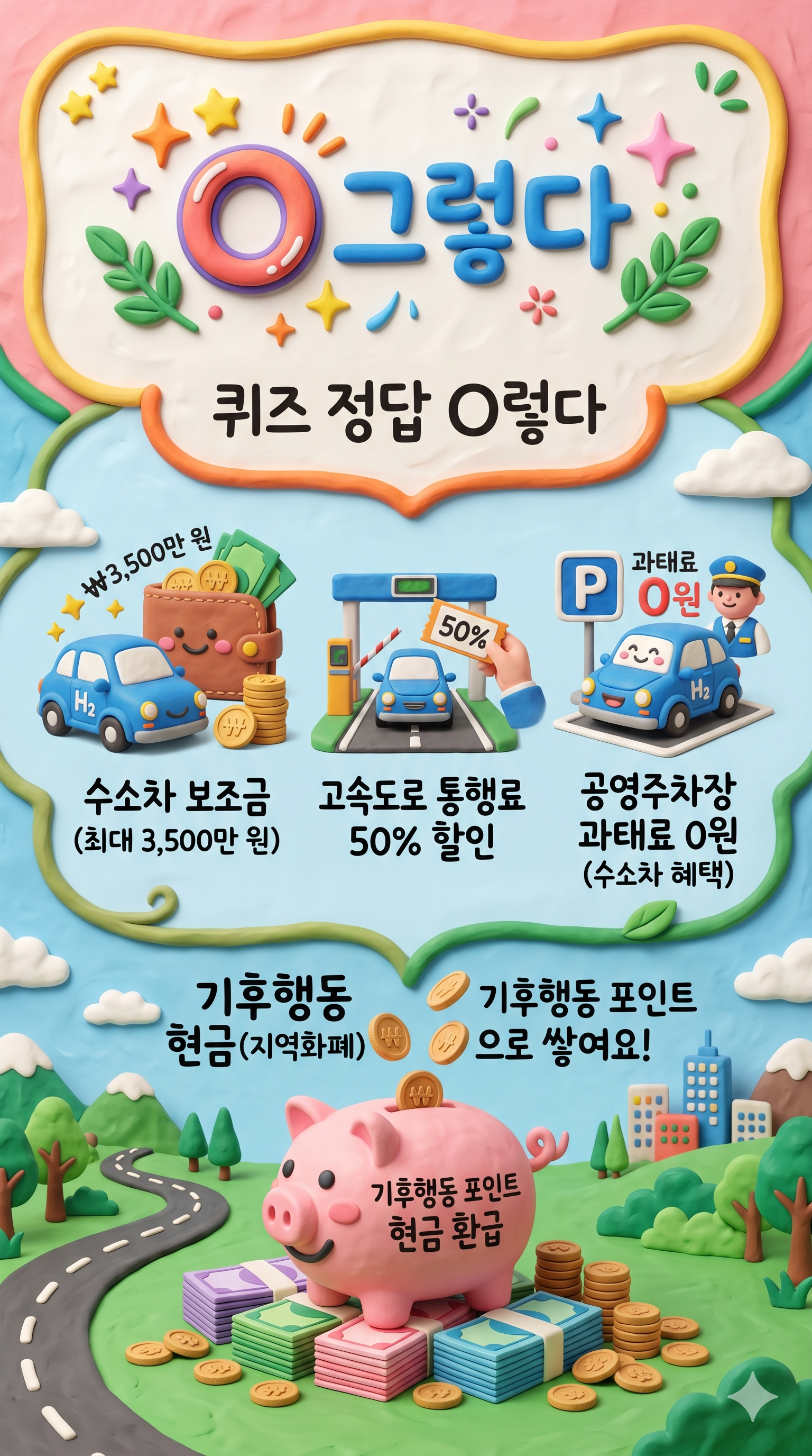 - 오늘의 퀴즈 정답: O 그렇다 (수소차는 물만 나옴)