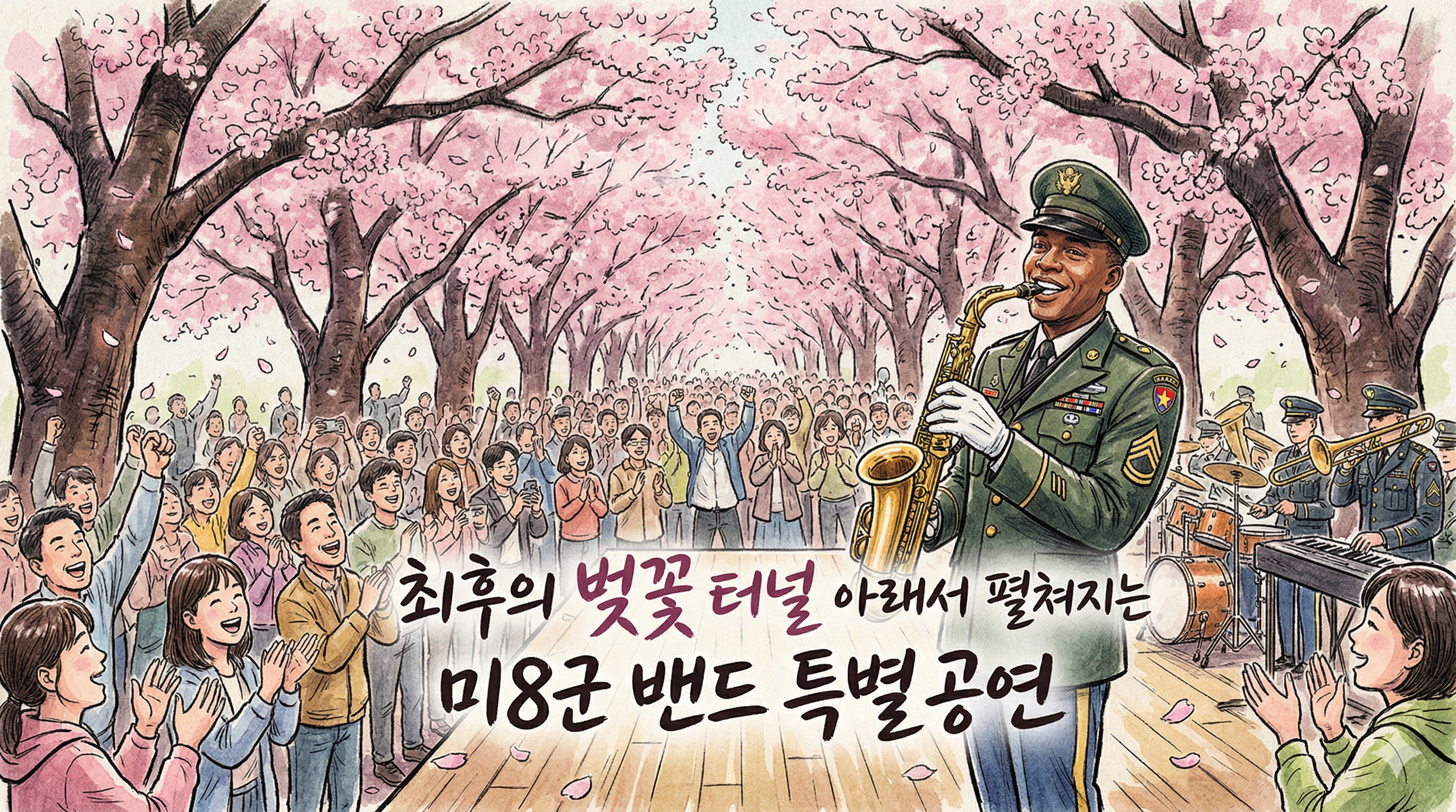 세부 프로그램: 1.2km 벚꽃 터널 걷기, 미8군 밴드 라이브 공연, 플리마켓