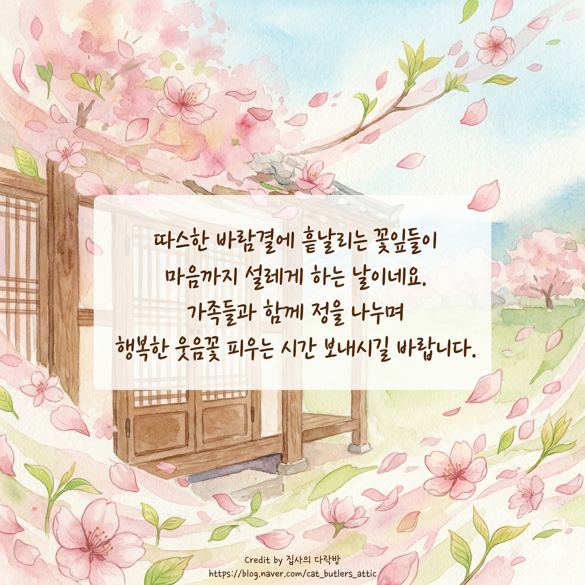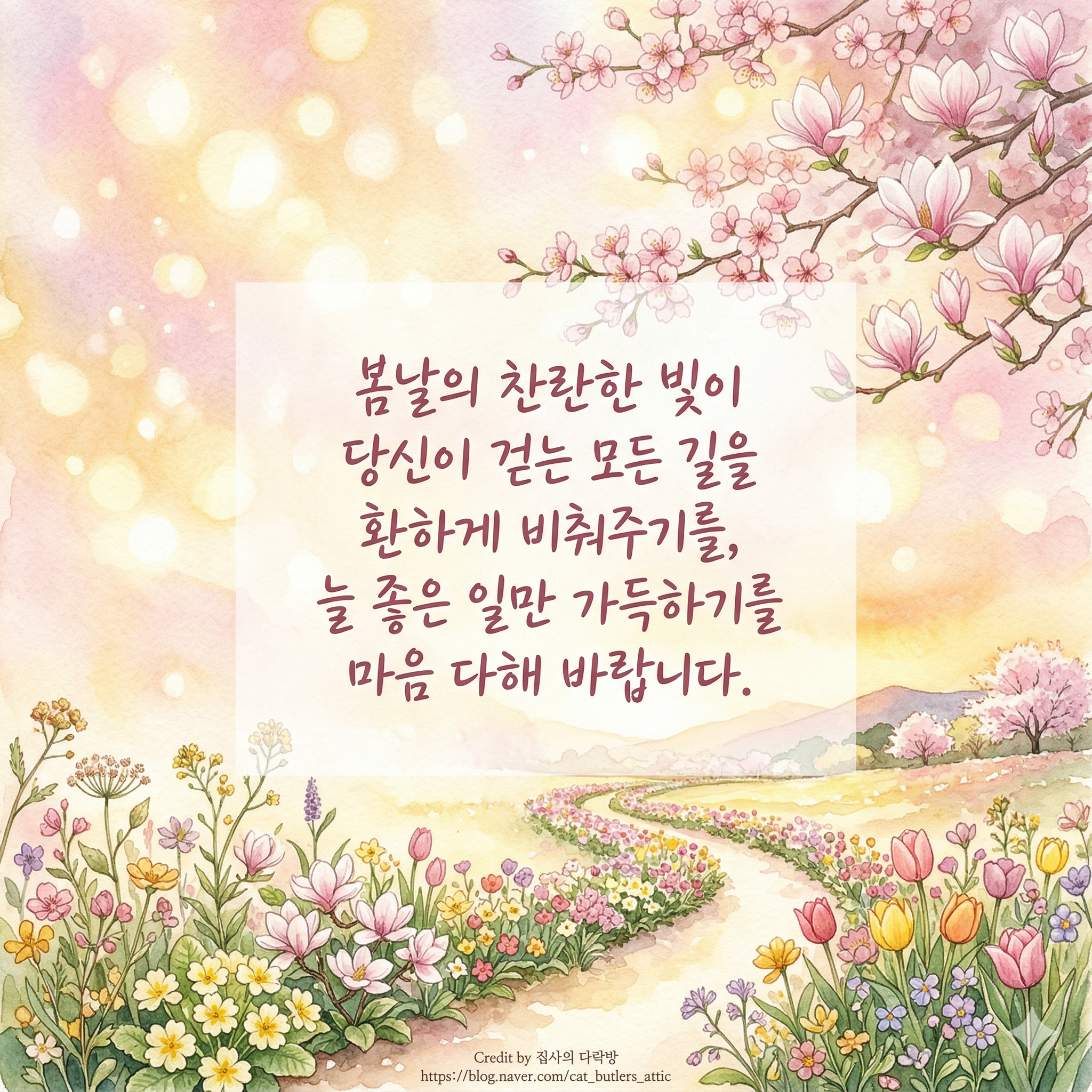 8. 봄의 따뜻한 기운이 가정과 일터에 가득하시길 바라며, 늘 건강하시기를 기원합니다.
