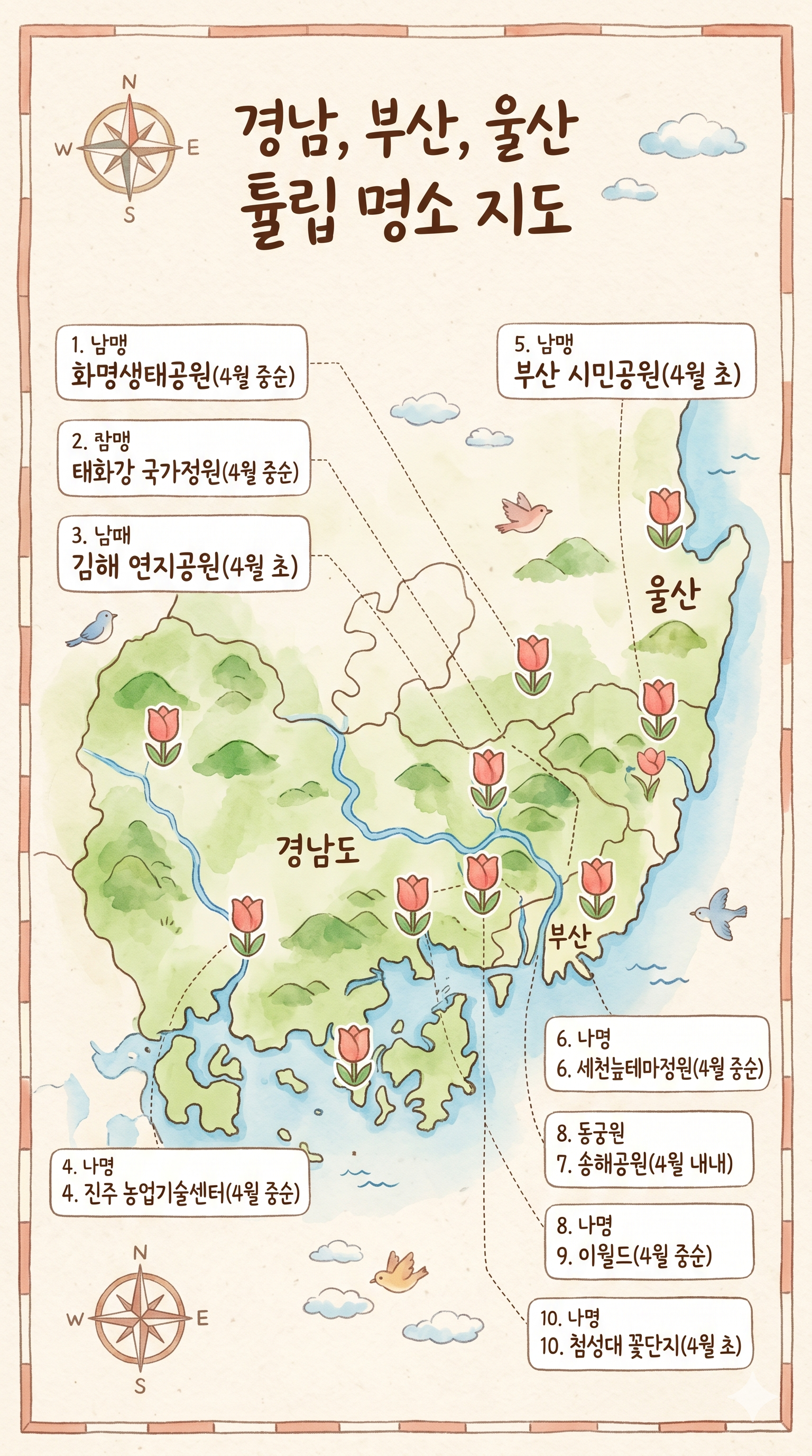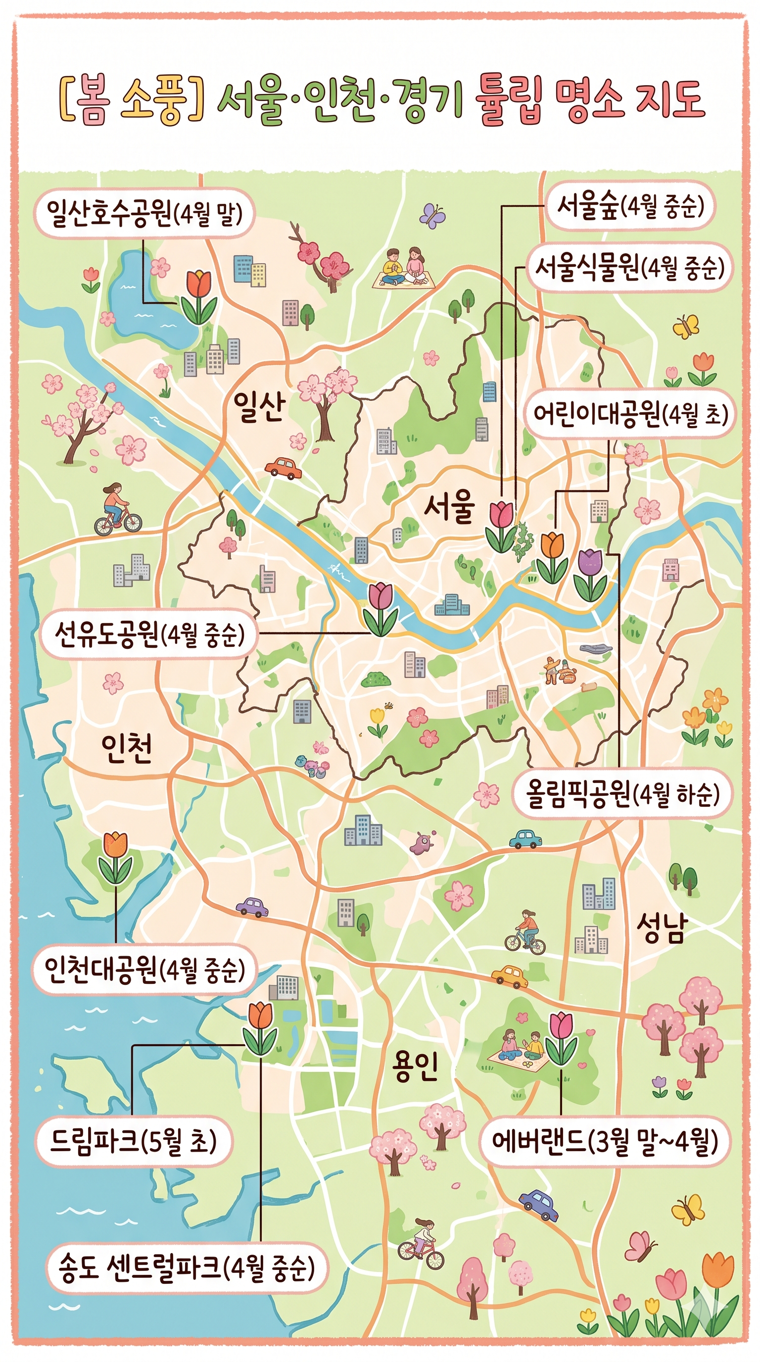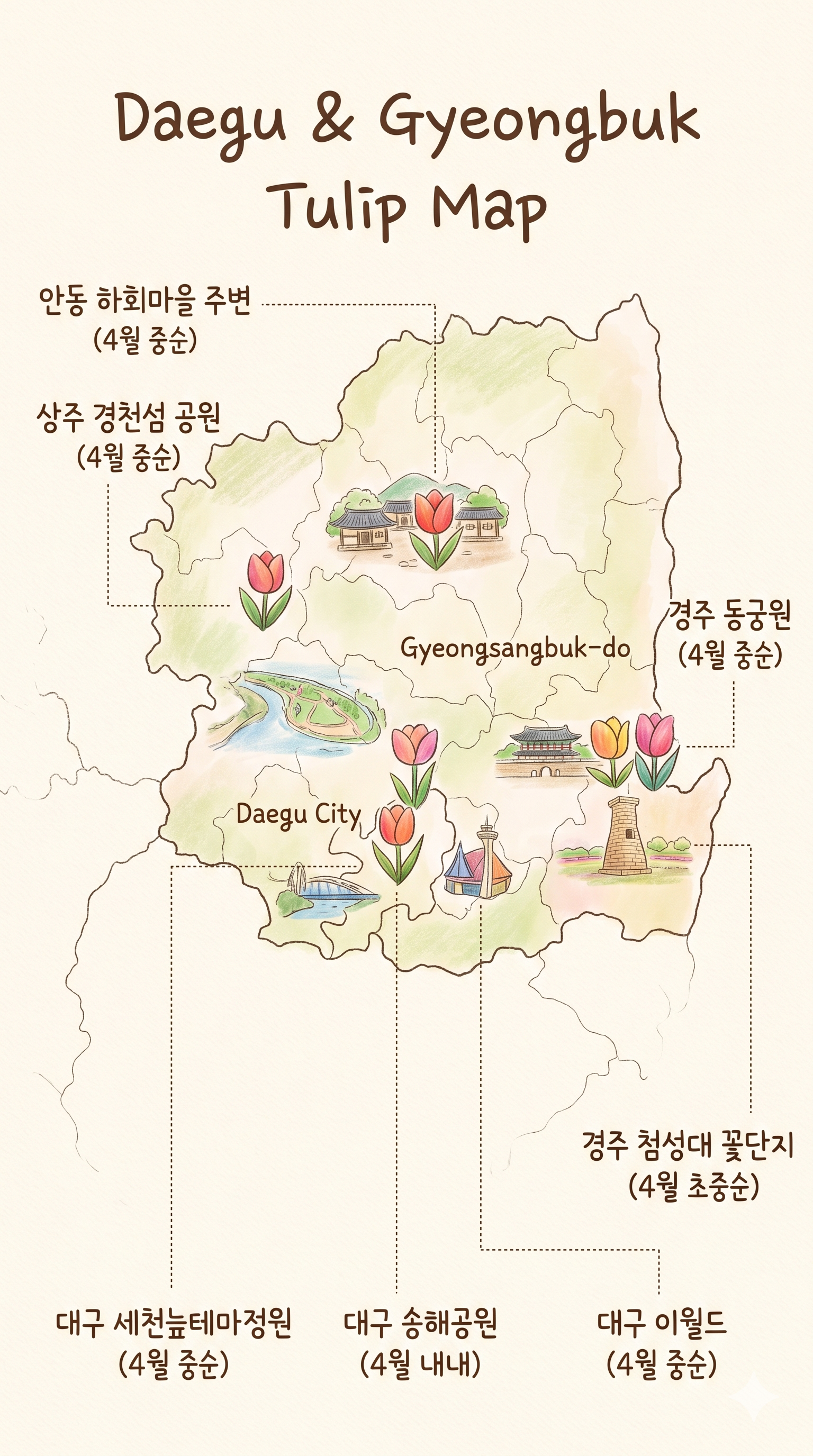 🌷 2026 전국 튤립 명소 45곳 완벽 지도! 지역별 코디 & 로컬 맛집 총정리